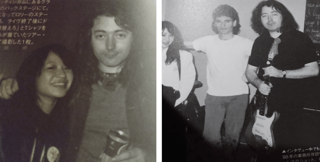 Following the first night in Tokyo, Rory slept until the afternoon and then did more radio and press interviews. Then, on 25th and 26th January, he performed in Tokyo again, this time at the Nakano Sunplaza Hall. By the third night, Rory’s reputation had spread around the city by word of mouth, leading the concert hall to be packed with spectators. One member of the audience was Akiko Watanabe, a music journalist. Akiko worked for Stereo magazine at the time and had interviewed Rory earlier in the day at his hotel. She has kindly given us permission to share the photograph taken during this meeting (see below). Although Akiko never met Rory again, she did see him play later in the year at Central Park in New York – the now mythical gig when he upstaged Aerosmith. She has fond memories of both occasions.