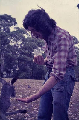 Rory feeding kangaroos during his first visit to Australia, 1975.