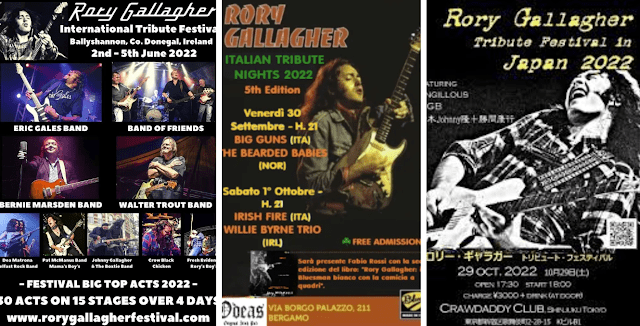 The annual Rory Gallagher Festival took place in Ballyshannon in June 2022. It featured headlining performances by Band of Friends, Eric Gales Band and Bernie Marsden, and attracted thousands of Rory fans from across the world. Across September 30 and October 1, the Irish pub O’Deas in Bergamo, Italy held the annual ‘Italian Rory Nights’. For this year’s two-day festival, the revised edition of Il bluesman bianco con la camicia a quadri (‘The white bluesman in the plaid shirt’) by Italian author Fabio Rossi was featured, as well as anecdotes and memories of Rory’s visits to Italy throughout his career. In addition to performances by tribute bands, Rory memorabilia and instruments were exhibited on the night. The annual Rory Gallagher tribute festival in Japan was held on October 29, 2022. This is the 8th Japan Tribute Festival to be held by the Rory Gallagher Tribute Festival Executive Committee. The night included performances by acts such as Angillous and Johnny Takashi Suzuki and Yasuyuki Katsuma at Tokyo’s the Crawdaddy Club.