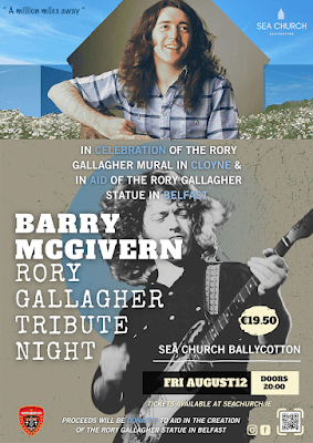 As mentioned in the ‘Celebration of Mr. Blues’ post, a statue of Rory in Belfast has been in the works since 2016. In August 2022, the Barry McGivern Band (Ireland’s longest running Rory tribute band) put on a concert at Sea Church in Ballycotton to raise money for the statue.