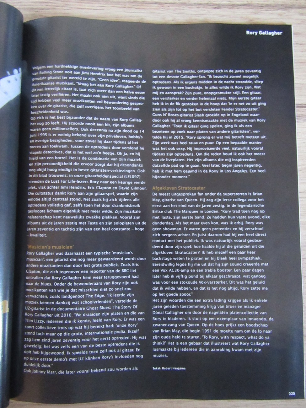 Persistent tradition has it that a Rolling Stone journalist once asked Jimi Hendrix what it was like to be the greatest guitarist in the world. “I don’t know,” the American musician responded. “Ask Rory Gallagher.” Whether this is a literal quote is difficult to verify more than half a century later [note: it isn’t! Hendrix never said it!]. It doesn’t matter, because since then many more musicians have spoken with admiration about the guitarist, who himself was the epitome of a modest hero. In itself it is quite special that Rory Gallagher’s name is still alive. He never had a hit, his albums were not million sellers. Even decades after his death on 14 June 1995, little is known about his private life, hobbies and other activities, insofar as he was able to do so during all his touring. He devoured piles of detective novels between gigs. That’s about it. Oh yeah, and he liked a drink [There’s so much more they could say about this incredible man, yet they choose this 🙄). It is the combination of his music and his personality that ensures that he still ends up high on the lists of best guitarists. Also, in this magazine by the way: in our guitar heroes special (LFL097) the Lust for Life readers voted Rory in a neat fourth place, just behind Jimi Hendrix, Eric Clapton and David Gilmour. Rory owes this cult status to his guitar playing, in which his emotions were always central. Just as he gave himself completely during all performances, even when his body, damaged by alcohol abuse [again, so much more complex than this, but so typical of ‘lazy’ journalism to reduce Rory’s physical and mental health problems in this way], no longer wanted to perform. His musical legacy has hardly any weak spots. Especially his albums from the sixties with Taste and his solo albums from the seventies and eighties are very consistent, high quality.