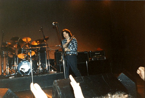 The gig on the 17th in particular was worth waiting for. Rory was relaxed and enjoying himself, whilst the audience response was loud and appreciative. We had prime spots in front of the stage, practically in the centre. It was fascinating to watch Rory call out a song title, then launched straight into it, or start the song and watch Gerry and Brendan follow. Incidentally, Capital Radio, a London radio station, taped both concerts, but when I rang them up, they said they had no idea when they would be broadcast as they had a large backlog of live material. However, if you send in a SAE, they will try to send you a warning. Unless of course, they have to be transmitted at short notice to fill in a programming gap, which does not sound very encouraging. Also, there were professional photographers snapping away at both gigs. Does this mean we can expect a new album soon?