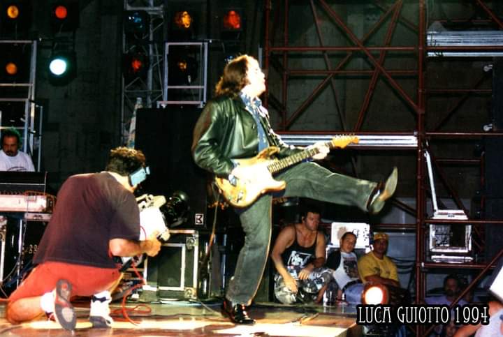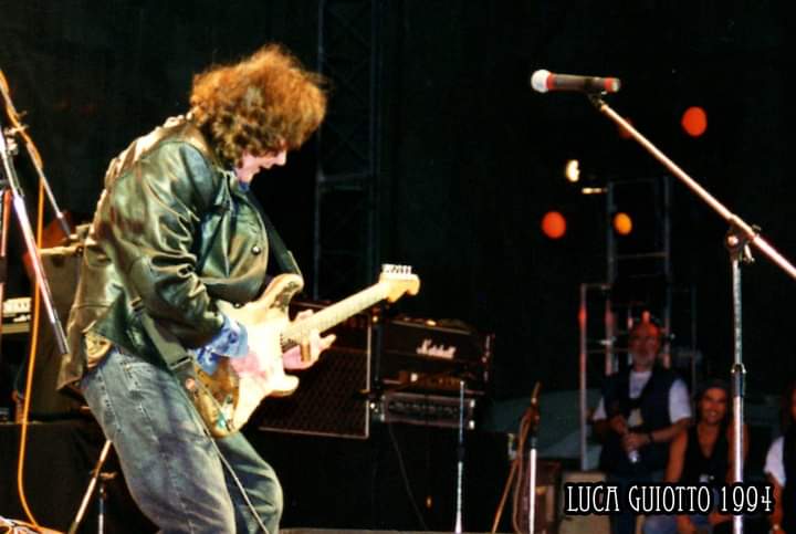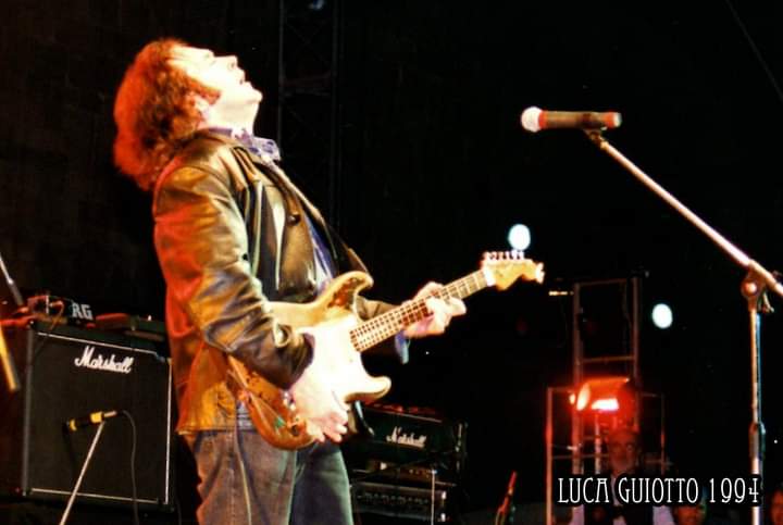 Since setting up Rewriting Rory in November 2021, so many of our encounters with other people have been wonderfully serendipitous. Last autumn, for example, I was having a lazy Sunday afternoon watching Rory’s performance at the Pistoia Blues Festival in 1994 when I stumbled across a random comment on the Rory Gallagher Official Facebook Page from a man called Luca Guiotto. On a recently posted photo of Rory at the Geelhouse Rock Festival in 1994, Luca had written that he had also seen Rory the same month at Pistoia and included the spectacular photo above, which he took on the occasion. I immediately reached out to Luca and was overwhelmed by his kindness and generosity (as is so often the case in the Rory fan community). He showed me a number of other photos of Rory that he took that day and gave me permission to post them on our website. When I cheekily asked if I could interview him to find out more, he also very graciously agreed. Our interview took place in Italian on 22 August 2023. I include the translation below, along with a selection of Luca’s photos.