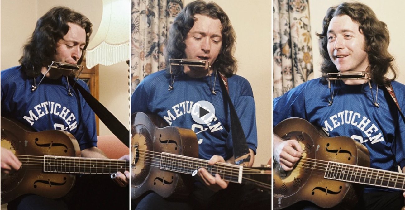 Rory was a great harmonica player and, in the early days, he could often be seen onstage with a harmonica brace around his neck, which allowed him to simultaneously play harp and guitar. He puts this to good effect in the iconic version of ‘I Could’ve Had Religion’ captured on film at the Marquee Club in 1972 and on record for Live! in Europe. There are also numerous stunning acoustic examples of this musical multi-tasking, such as ‘Banker’s Blues’ from Me and My Music (1977) and ‘Ride on Red, Ride on’ from Ireland’s Eye (1983).