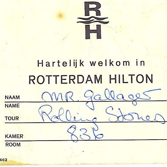 Representative of one of the many musical ‘what ifs?’ in Rory’s career, this surviving piece of paper comes from Rory’s invite to Rotterdam to jam/audition for the Rolling Stones in 1975. The sessions went well and, on the final night, Mick Jagger told Rory to go up to Keith Richards’ suite and speak to him (i.e., to find out if he was in the band). But when Rory got there, Keith was comatose in the bed. After failing to wake Keith on multiple occasions, Rory left a note saying, “You know where I am if you need me” and caught a plane back to Heathrow, ready to immediately travel to Tokyo for his Japanese tour. While joining the Stones could have been a big career break for Rory, as Bob Geldof nicely put it in the Ghost Blues documentary, “Rory could never have been able to put up with the bollocks of Mick and Keith.”