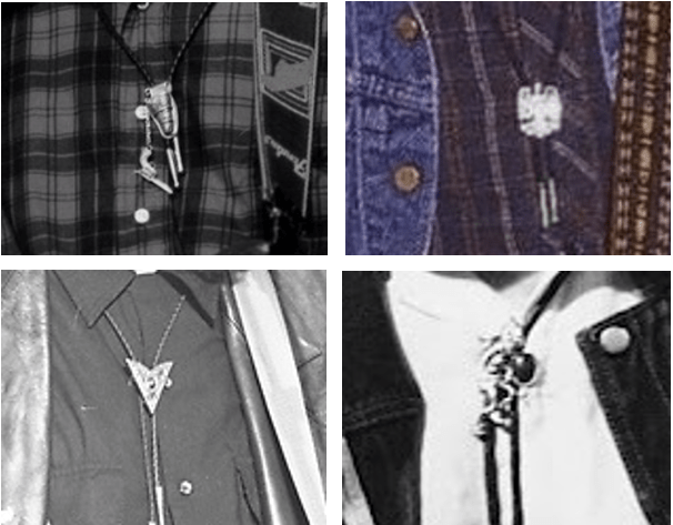 Another classic aspect of Rory’s Western image was the bolo tie. Even as early as the days of Taste, he can be seen wearing them, but they became a major part of his attire throughout the 1980s and early 1990s. For Sylvia Haavisto, the bolo tie is most characteristic of the way that Rory “embraced the spirit of the West with his fiercely independent, hardworking and adventurous spirit.” Ellen Petrova particularly likes Rory’s blue ones: “It matched perfectly with his western chic style and his eyes.”