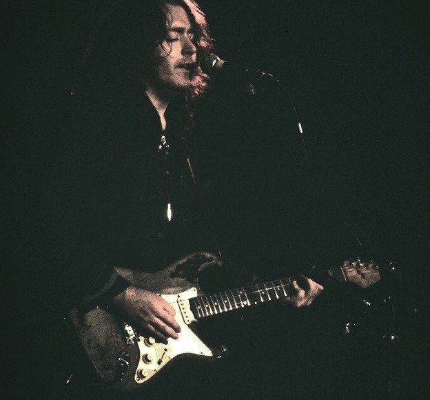 Rory introduced ‘Tattoo’d Lady’ with some flamenco guitar. Both his sidemen produced frantically good solos on this number, belying the fact they’d been hard at it for two hours. After this number, Rory went off, but the delighted crowd were not to be denied for long. He returned and launched into ‘Messin’ with the Kid’. Of all the bands I’ve seen, only the Groundhogs could come close to this band’s attack. He followed up with speeded up versions of Howlin Wolf’s ‘I’m Leaving You’ and Bo Carter’s ‘All Around Man’, the latter number opened with a body twitching riff much like that of ZZ Top’s ‘La Grange’. It also featured the most aggressive slide guitar of the night. All he needed was somebody like Johnny Winter to swap licks with. I’ve never seen R&B played with such intensity and at the age of 31 years, I’ve seen a few bands in my time.