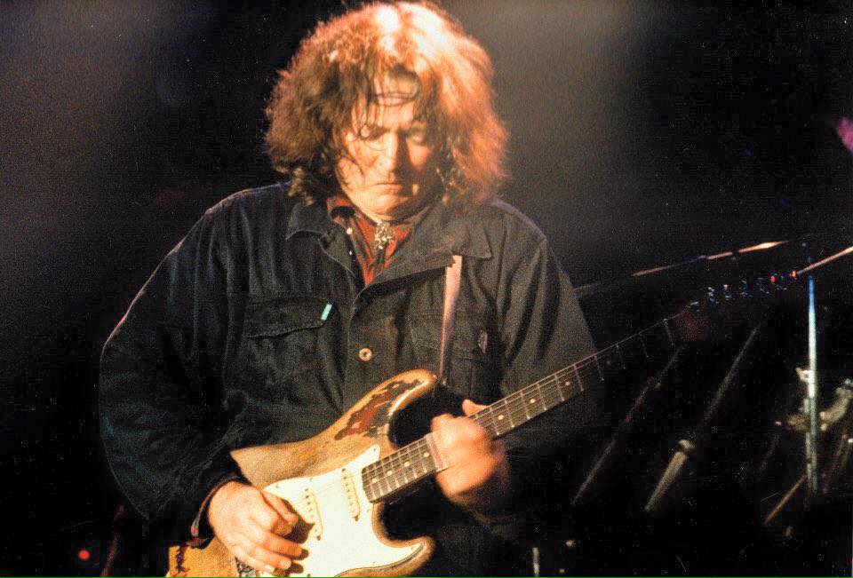 On the stage, the familiar setup of absent drums could be discerned. The Marshalls sat quietly waiting in the semi darkness and you knew he was here and soon they would speak that special language only they and Rory knew. A solo artist was introduced and sang several bluesy folk songs accompanied by a 12-string acoustic with slide. When he finished his set, the clock was moving on towards 9:00 PM. The Marshall amps were humming now as they warmed up, red lights glowing, signalling Rory’s imminent appearance.
