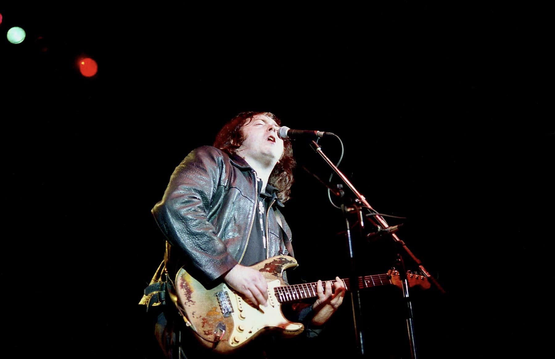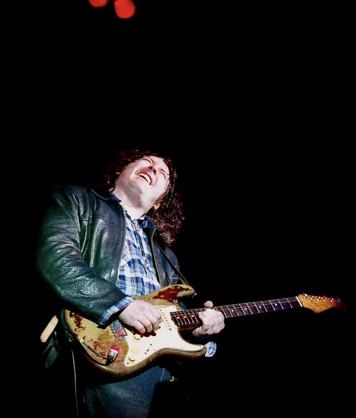 I believe these superb colour images are from when Jeff accompanied me to one of Rory’s shows in Liverpool in 1988. I was shooting black & white – and didn’t realise until now, that Jeff was using colour film. Personally, I rarely used colour negative film when photographing concerts – because magazines wanted either B&W or colour transparency… so these photos I’ve scanned are quite a rarity.